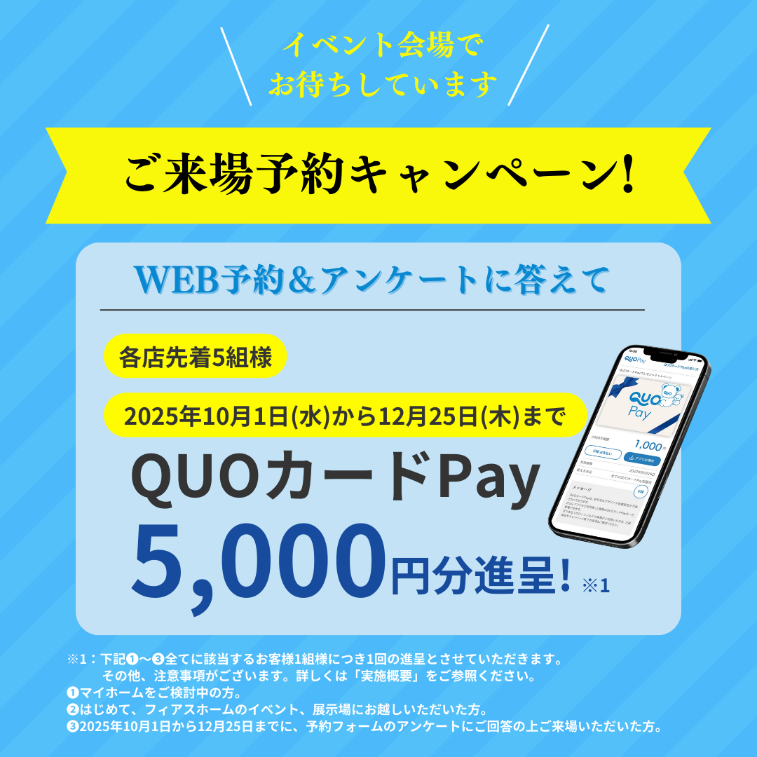 いよいよ、ラスト見学会開催!吹き抜けでも快適に過ごせる高性能住宅を、ぜひご体感ください。予約フォームアンケートに回答の上、ご来場いただいたお客様に5,000円分のQUOカードPayを進呈します。
