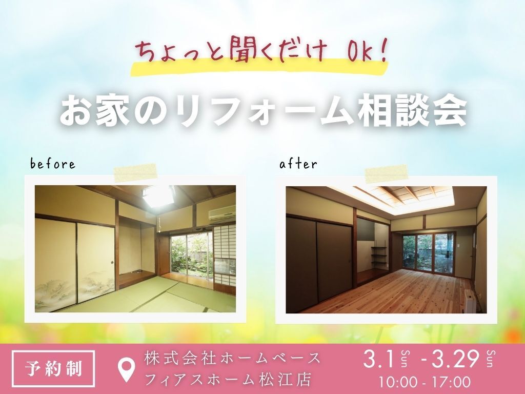水回り・間取り・断熱・補助金のことまで。 リフォームの「分からない」を一つずつ解消する相談会です。住まいの気になること、お気軽にご相談ください。